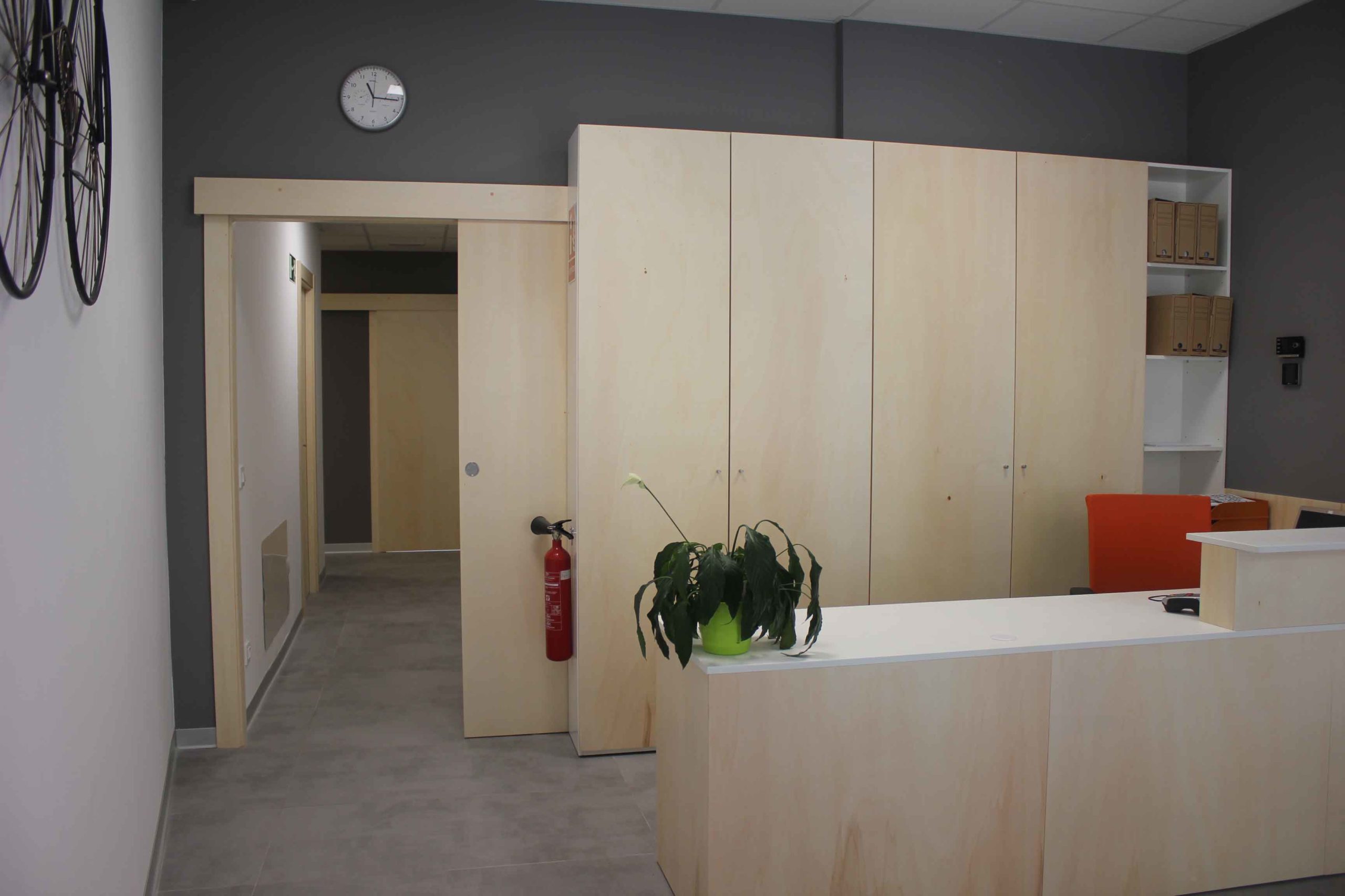 Para su concepción se tuvo en cuenta la forma del local y se diseñó a partir de un elemento vertebrador que conecta y distribuye los distintos espacios. El acceso acoge a sus ocupantes y los invita a entrar dirigiéndolos a su interior, en el cual, se dispusieron elementos sencillos de texturas vistas para favorecer su bienestar.